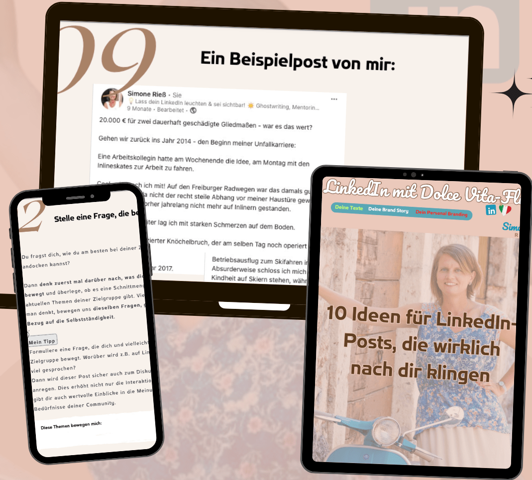 Kein Copy-Paste, sondern Impulse, die du sofort auf deine eigene Art umsetzen kannst – ehrlich, nahbar und wirkungsvoll.